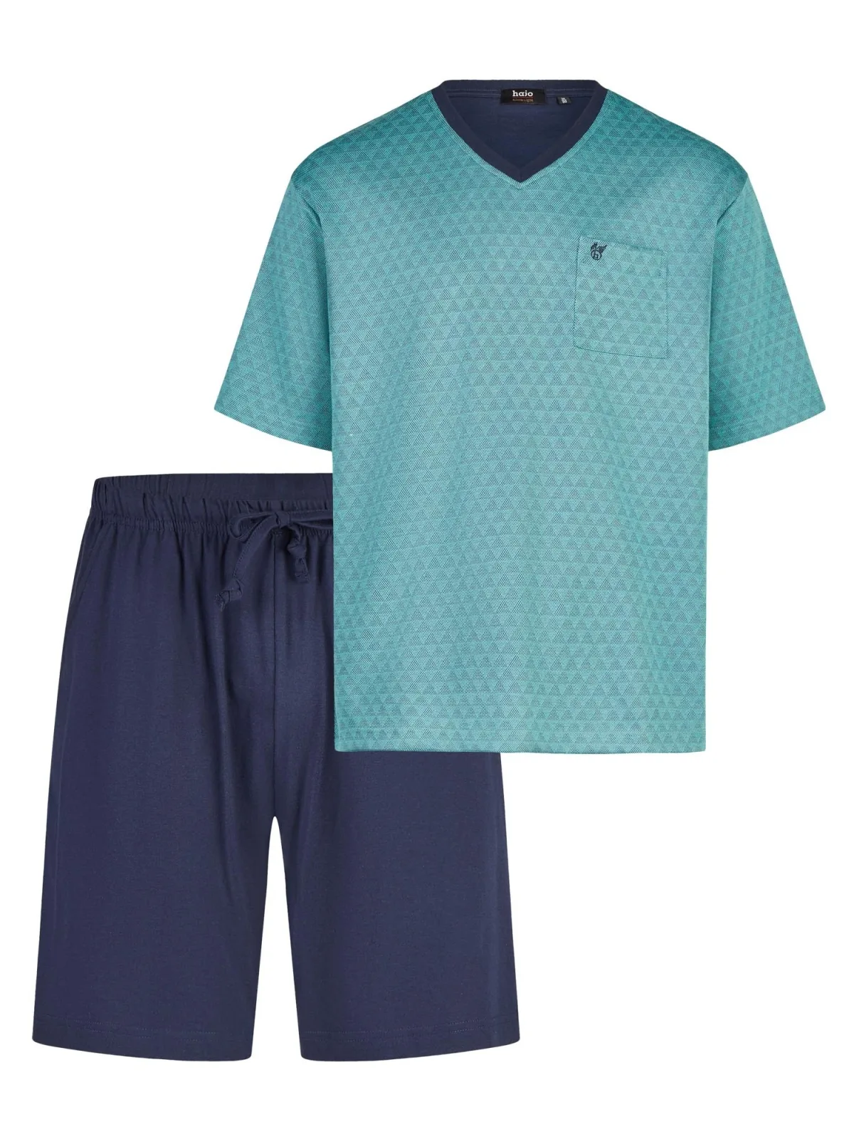 - Bij bol.com kun je Hajo heren shortama turquoise met driehoekjes Blauw kopen voor slechts €50,95 , dat is 11% goedkoper dan bij ABOUT YOU (€56,95).