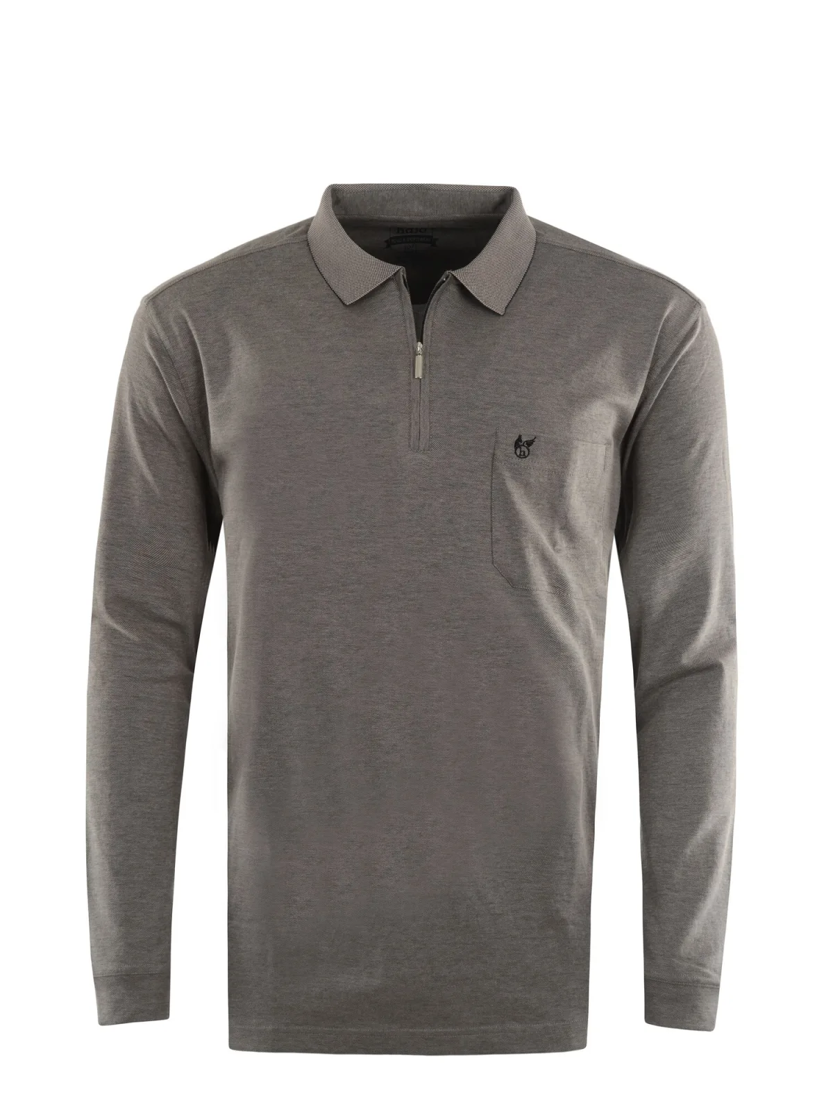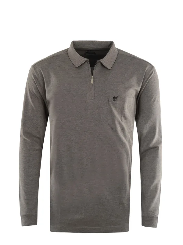 Sportief langarmshirt met platgebreide kraag, verborgen rits en opgestikte borstzak. Comfortabel om te dragen en onderhoudsvriendelijk.