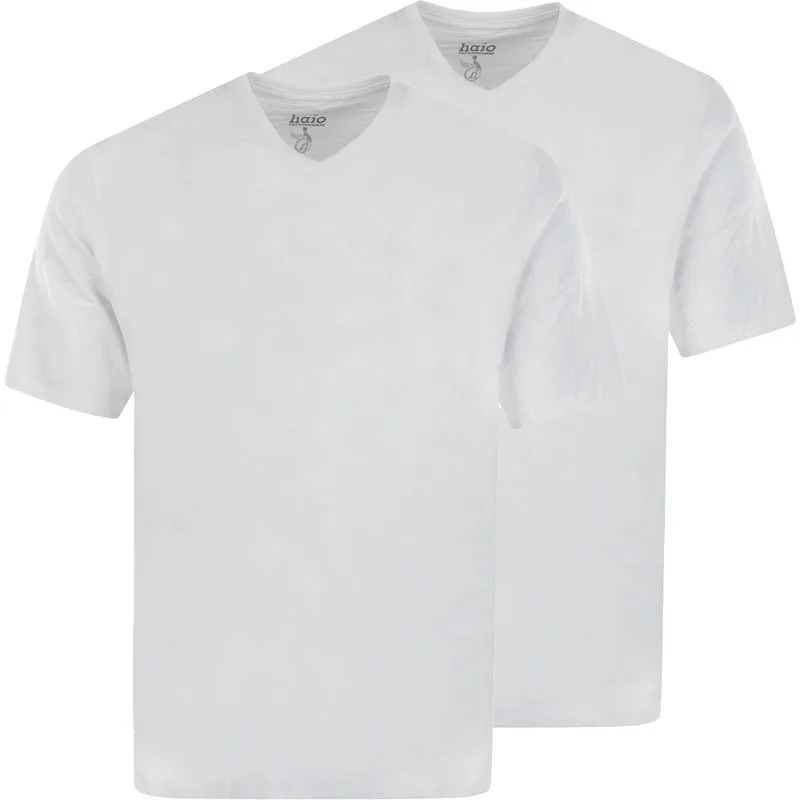 Twee T-shirts van het merk Hajo. Shirt met korte mouwen en V-hals, ideaal als ondergoed, gemaakt van puur katoen, zachte single jersey kwaliteit.