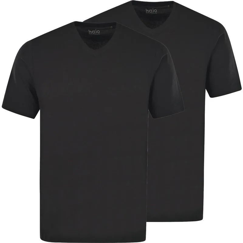 Twee T-shirts van het merk Hajo. Shirt met korte mouwen en V-hals, ideaal als ondergoed, gemaakt van puur katoen, zachte single jersey kwaliteit.