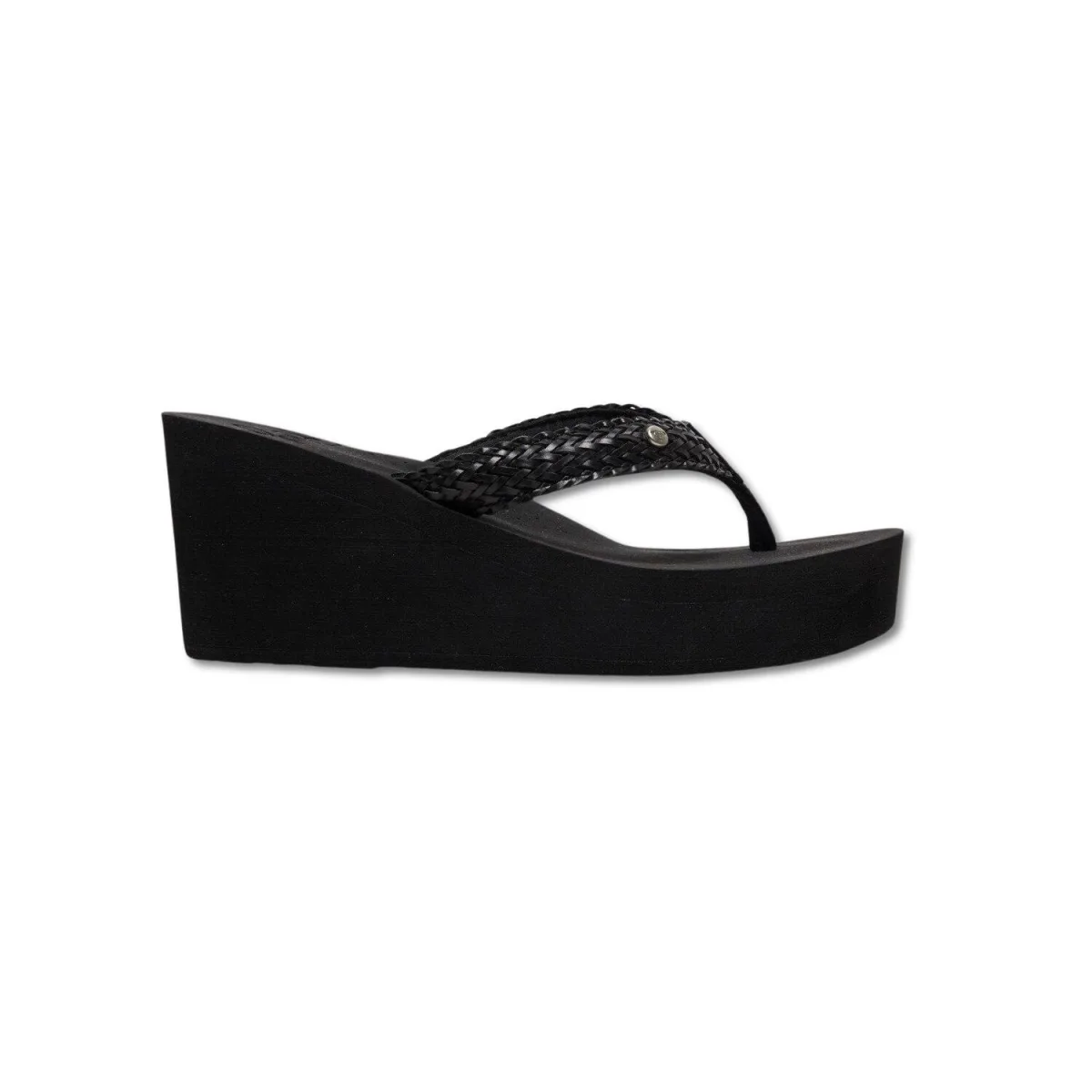 Design: Profielzolen, Elastische inserts, T-strap; Type sluiting: Slip; Type hak: Sleehak; Materiaal: Imitatieleder; Motief: Effen; Plateau: Met plateau; Materiaal: Imitatieleer; Schoenneus: Open toe; Extra's: Gevlochten structuur, Label plaatje, Flexibele zool; Hakhoogte: Hoge hak (7-10 cm)