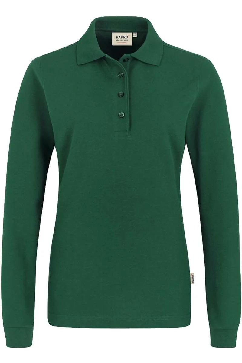 HAKRO 215 Regular Fit Dames poloshirt met lange mouwen donkergroen, Effen