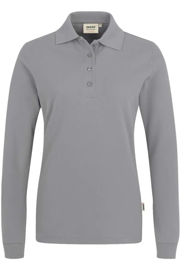 HAKRO 215 Regular Fit Dames poloshirt met lange mouwen grijs, Effen