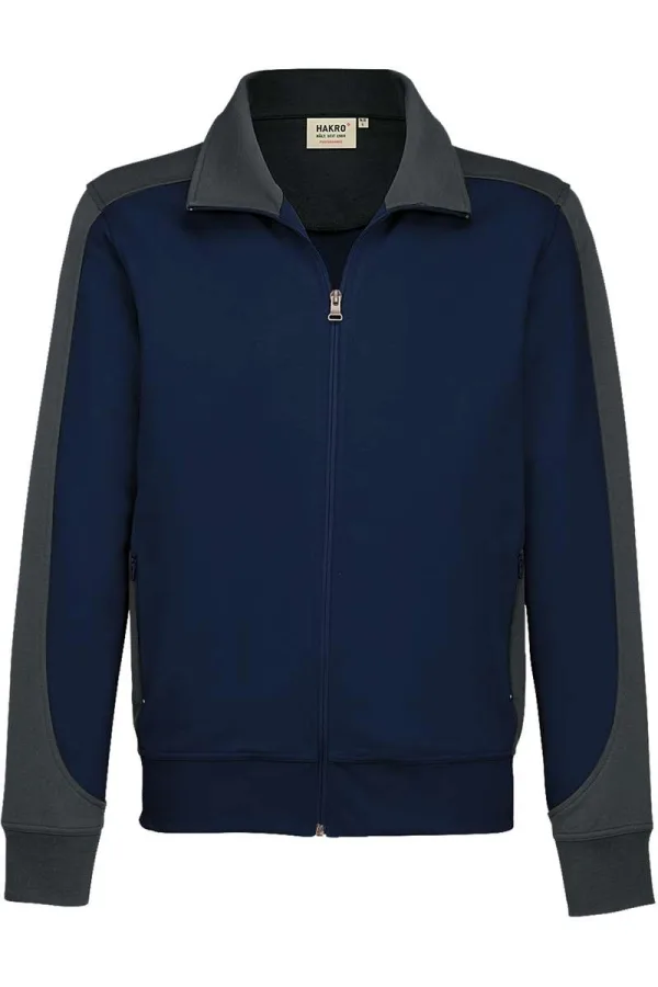 HAKRO 477 Comfort Fit Sweatjacket donkerblauw/antraciet, Tweekleurig