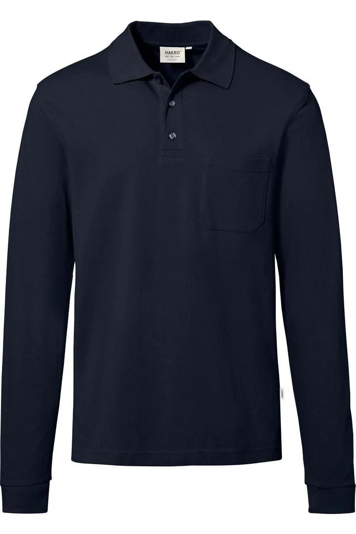 HAKRO Poloshirt lange mouw donkerblauw, Effen