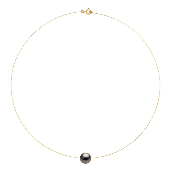Halsketting - Echte Cultuurparel Ronde 10-11 mm - ECHTE TAHITI - Geel Gouden kabel 375 - Halssnoer 42 cm - Wordt geleverd met Certificaat van Authenticiteit en Internationale Garantie - GEMAAKT IN FRANKRIJK -