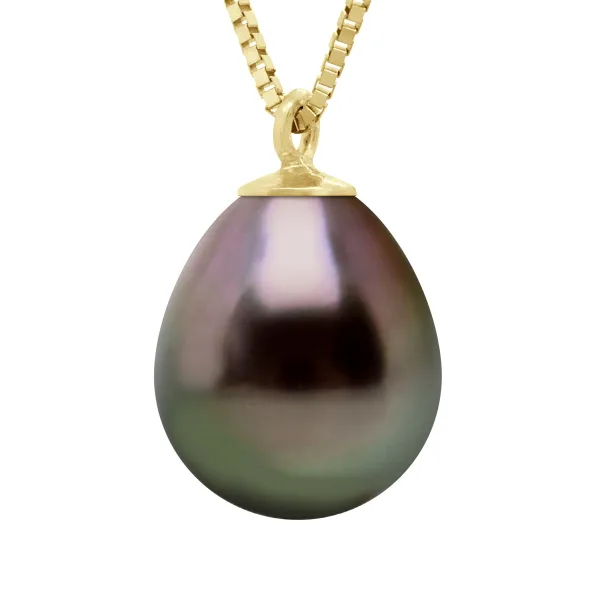 Ketting Echte Gecultiveerde TAHITI Parel Peer 9-10 mm - Schakel 'Venetiaans' in Geel Goud 375 - Lengte 42 cm - Geleverd met Certificaat van Echtheid en Internationale Garantie - MADE IN FRANKRIJK -