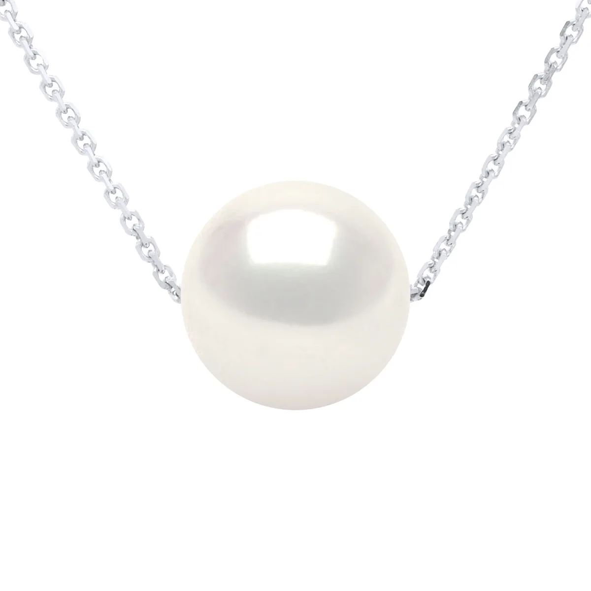 Halsketting Echte Gecultiveerde Zoetwaterparel Rond 8-9 mm - KLEUR NATUURLIJKE PAREL WIT - Link Forçat van Zilver 925 Rhodium gecoat - Lengte 42 cm - Geleverd met Certificaat van Echtheid en Internationale Garantie MADE IN FRANCE