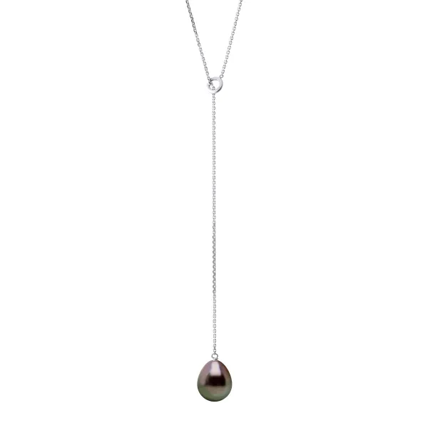 Halsketting 'LASSO' - Echte Cultuurparel Peren 8-9 mm - ECHTE TAHITI - Forçat Ketting Wit Goud 375 - Neklengte 45 cm - Geleverd met Echtheidscertificaat en Internationale Garantie - GEMAAKT IN FRANKRIJK -