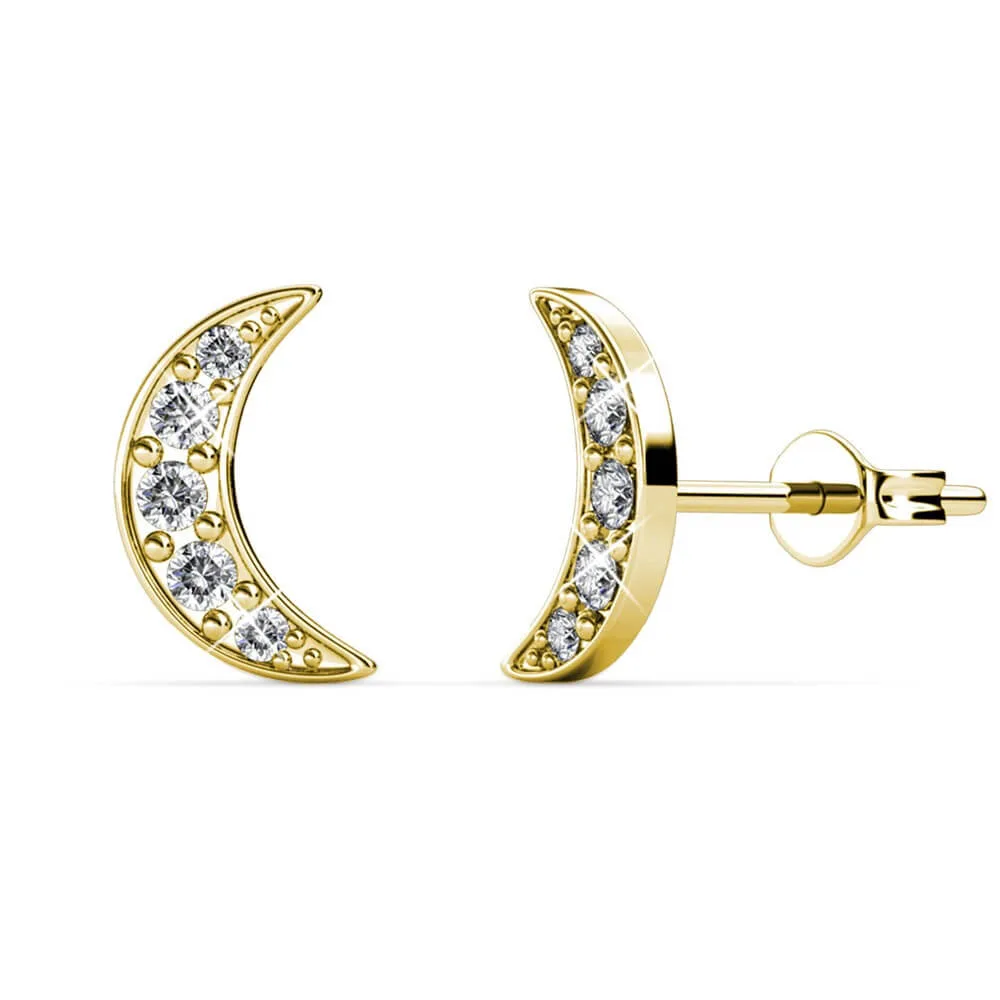 Halve maan oorbellen – goud en kristal Prijzen