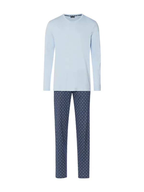 Hanro Pyjama lang ‘ Night & Day ‘ lichtblauw / donkerblauw