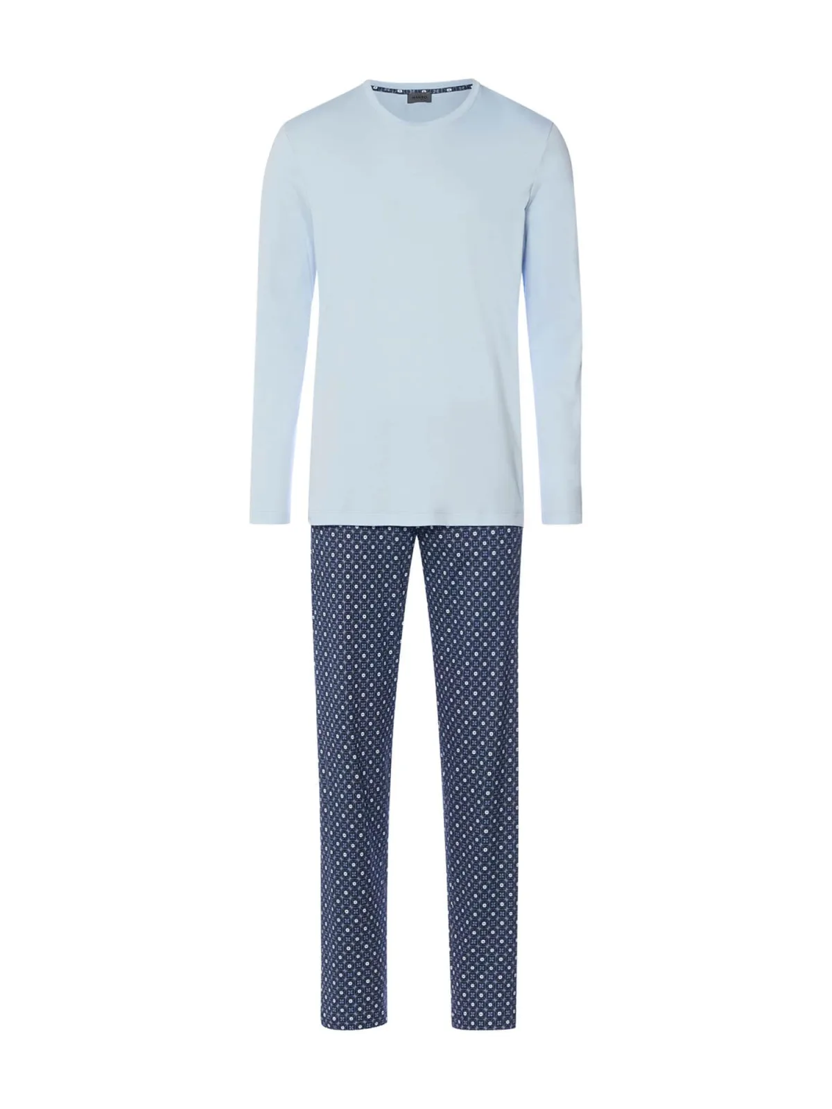 Specificaties: Hanro Pyjama lang ‘ Night & Day ‘ lichtblauw / donkerblauw