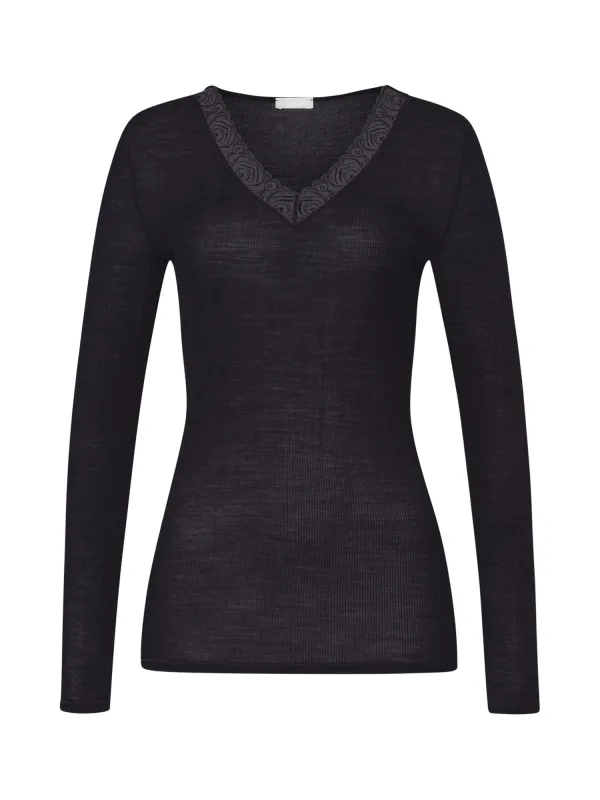 Hanro Shirt ‘ Woolen Lace ‘ zwart Prijzen