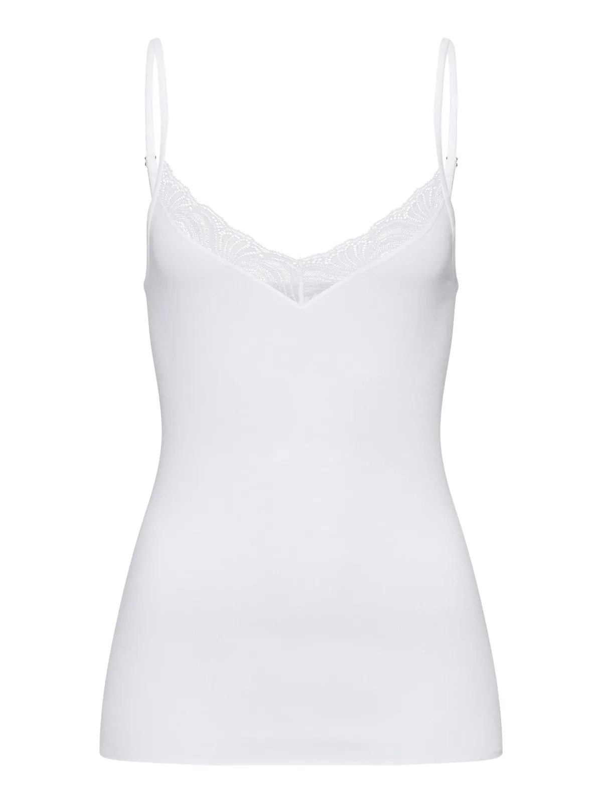 Design: Verstelbare riemen; Materiaal: Jersey; Halstype: V-hals; Motief: Effen; Soort bandjes: Spaghettibandjes; Details: Kant; Extra's: Op staal naden, Voelt zacht aan; Pasvorm: Aansluitende pasvorm; Armlengte: Mouwloos; Lengte: Normale lengte