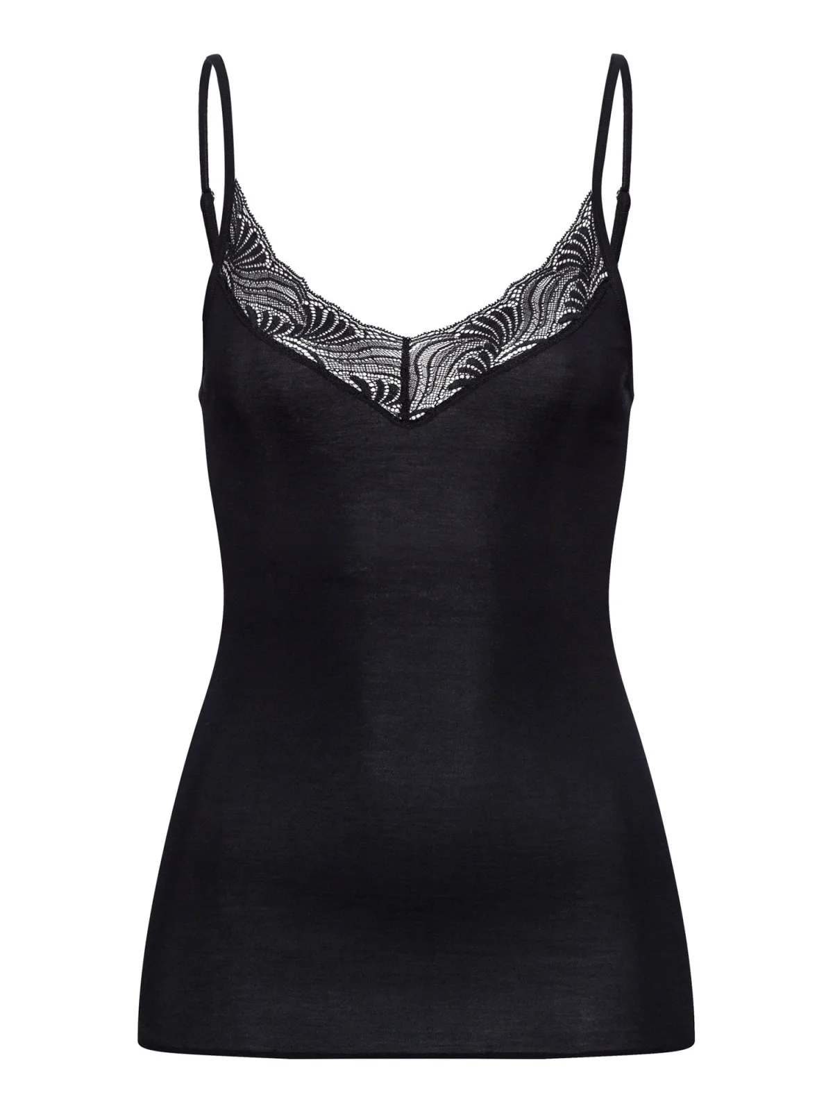 Design: Verstelbare riemen; Materiaal: Jersey; Halstype: V-hals; Motief: Effen; Soort bandjes: Spaghettibandjes; Details: Kant; Extra's: Op staal naden; Pasvorm: Aansluitende pasvorm; Armlengte: Mouwloos; Lengte: Normale lengte