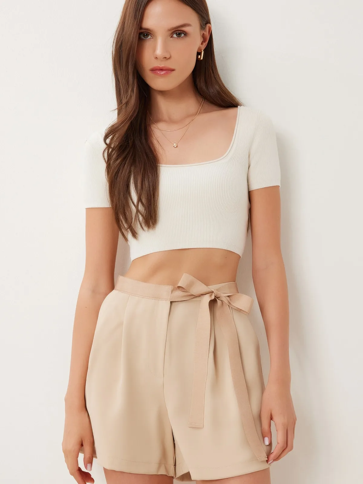 Design: Gevoerde zoom/rand, Wijde taille; Materiaal: Katoen; Motief: Effen; Details: Plooien; Extra's: Lichte stof, Riemlussen; Lengte: Kort/mini; Pasvorm: Wide leg; Taillehoogte: High waist