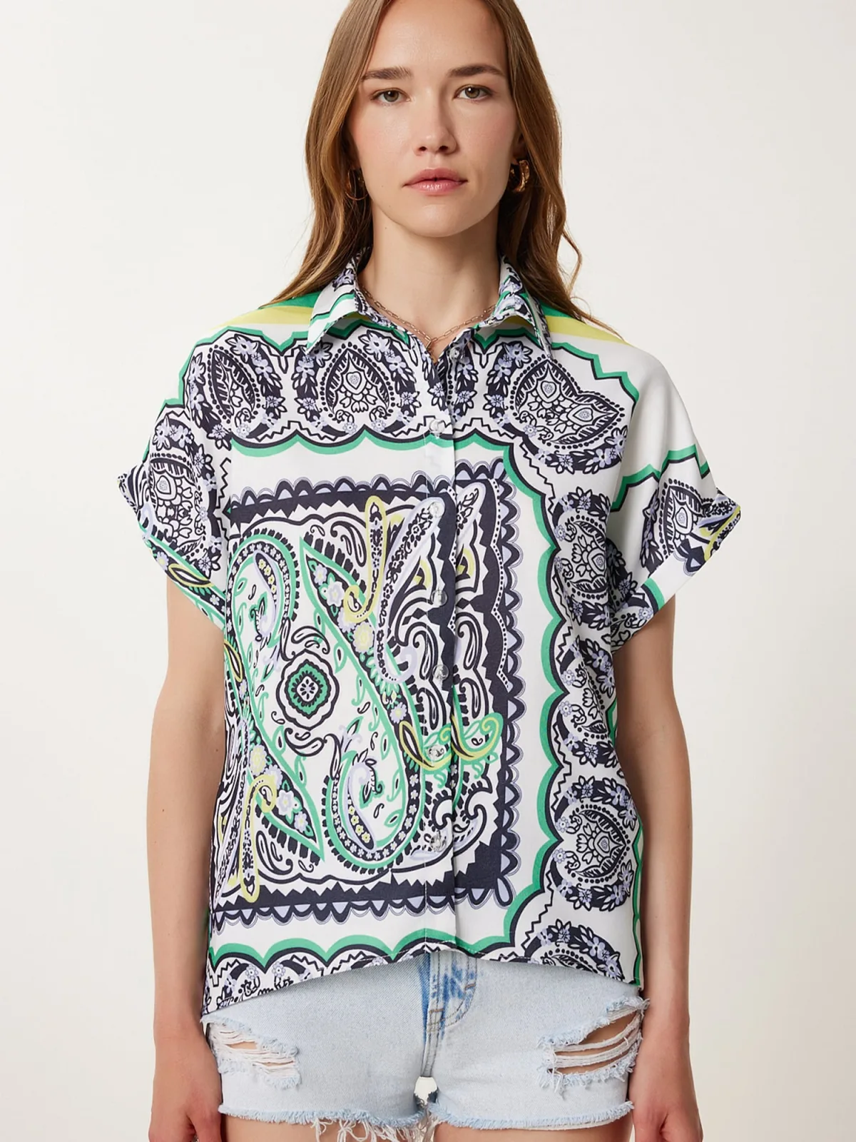 Happiness ?stanbul Blouse lichtgeel / lichtgroen / zwart / wit