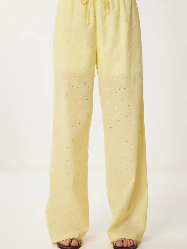Design: Taille met trekkoord, Elastische taille/zoom; Type sluiting: Elastische band; Materiaal: Katoen; Motief: Effen; Details: Borduursels, Gedrapeerd; Extra's: Op staal naden, Lichte stof; Lengte: Lang/maxi; Pasvorm: Wide leg; Taillehoogte: Mid waist