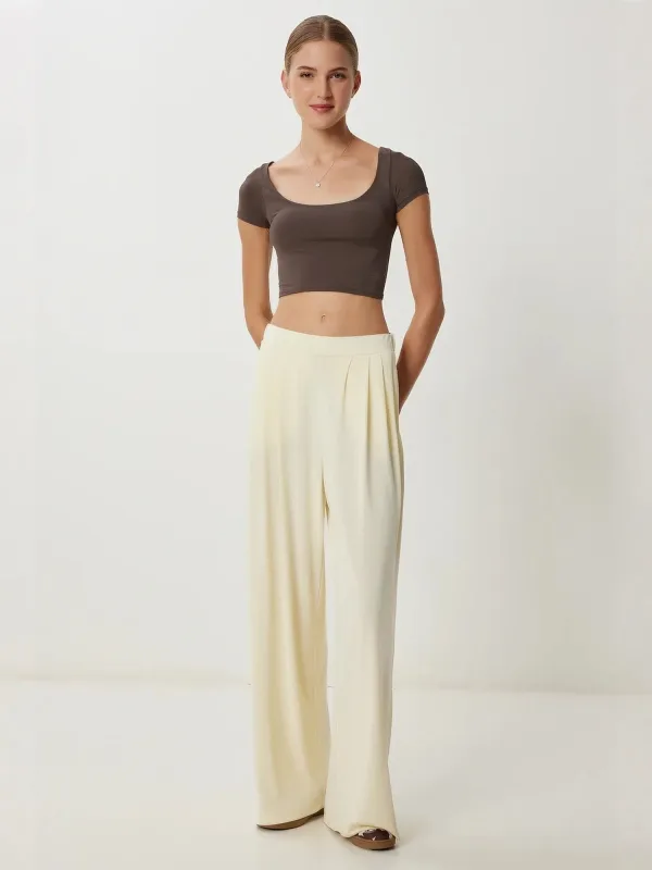 Design: Gevoerde zoom/rand, Elastische taille/zoom, Zakken aan de zijkant; Motief: Effen; Details: Plooien; Extra's: Op staal naden, Voelt zacht aan; Lengte: Lang/maxi; Pasvorm: Wide leg; Taillehoogte: Mid waist