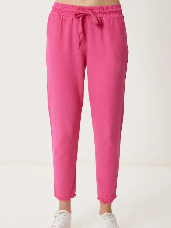 Design: Taille met trekkoord, Gefranjerde zoom, Zakken aan de zijkant; Materiaal: Katoen; Motief: Effen; Details: Franjes, Gedrapeerd; Extra's: Op staal naden, Voelt zacht aan; Lengte: 7/8 lengte; Pasvorm: Tapered; Taillehoogte: Mid waist