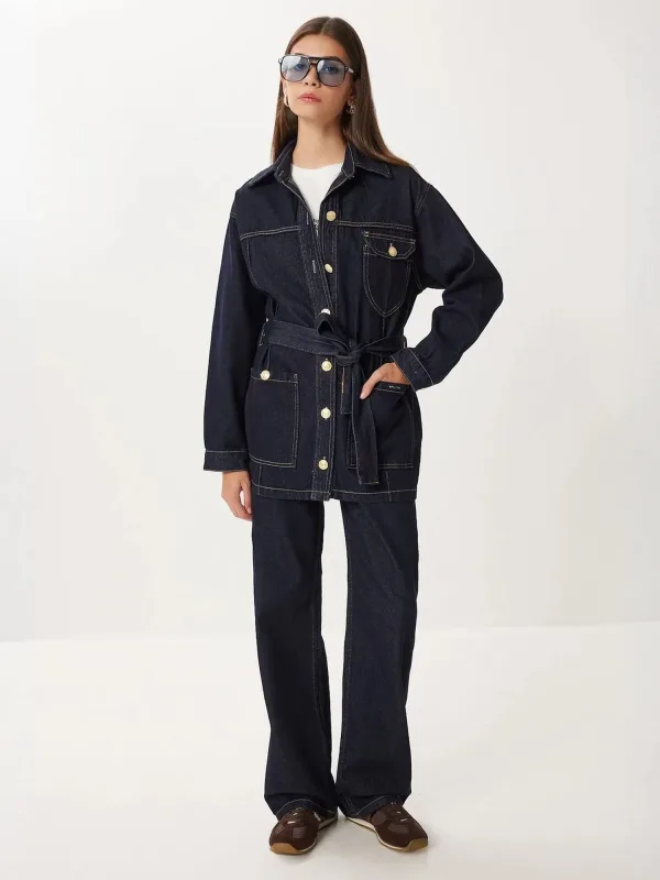 Design: Knop placket; Type sluiting: Knoopsluiting; Voering: Niet gevoerd; Materiaal: Denim; Motief: Effen; Kraag: Kentkraag; Extra's: Contrasterende naden; Lengte: Lang/maxi; Pasvorm: Losse pasvorm; Armlengte: Lange mouw