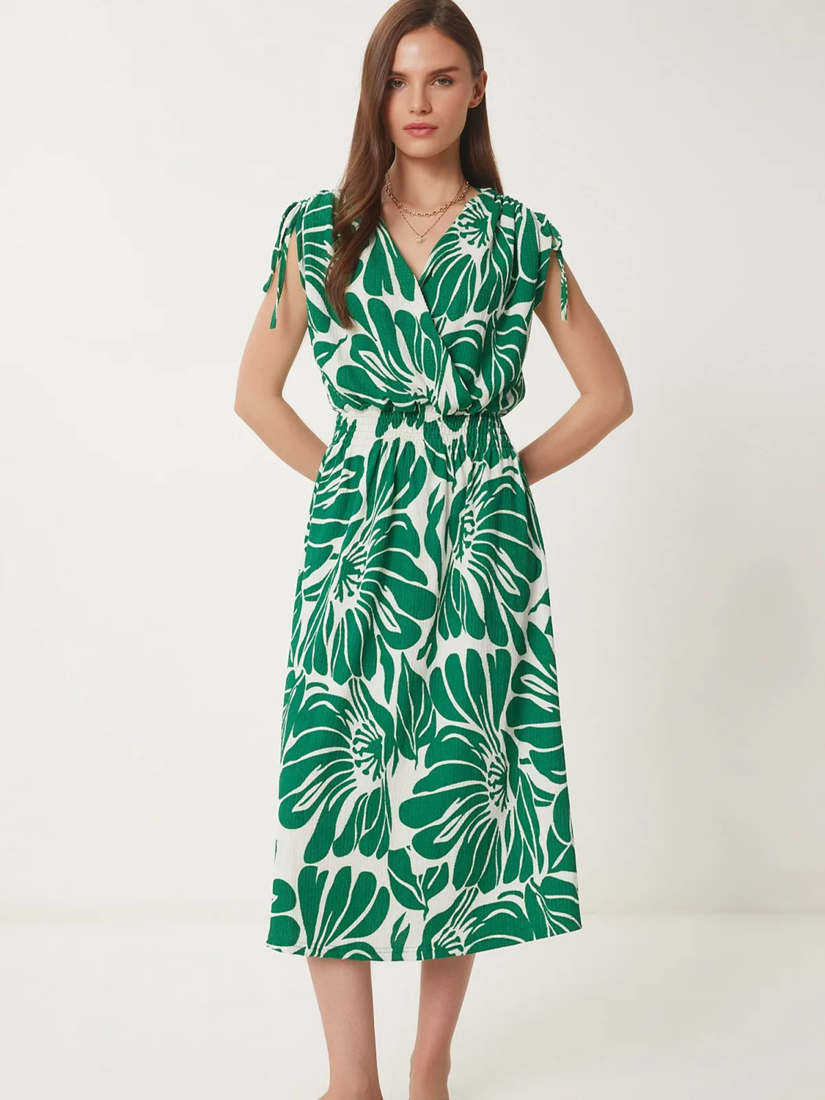 Specificaties: Happiness İstanbul Jurk groen / offwhite