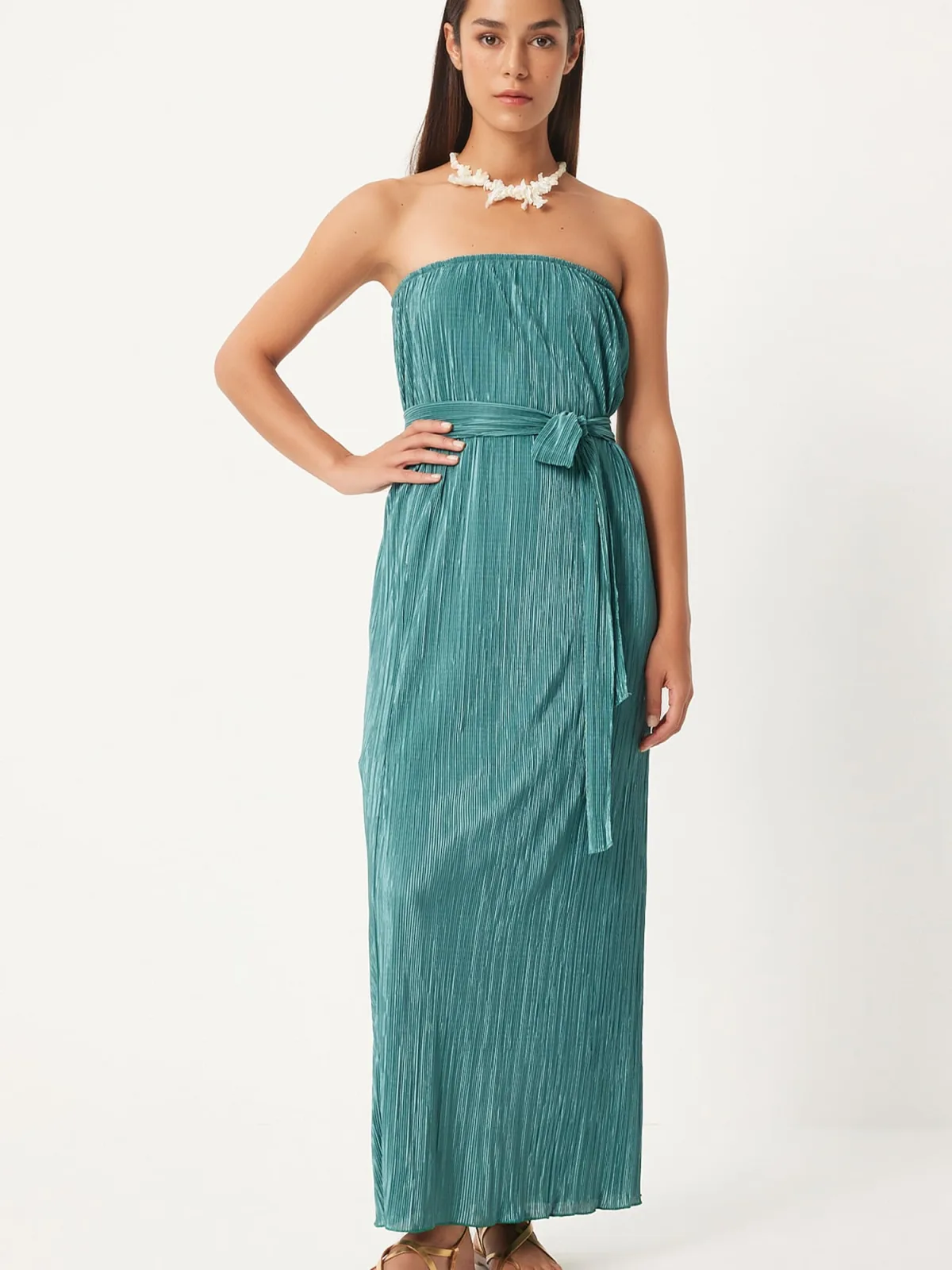 Design: Rechte zoom; Motief: Effen; Soort bandjes: Bandeau; Details: Gedrapeerd; Extra's: Gladde stof; Lengte: Lang/maxi; Snit: Recht; Pasvorm: Normale pasvorm; Armlengte: Mouwloos