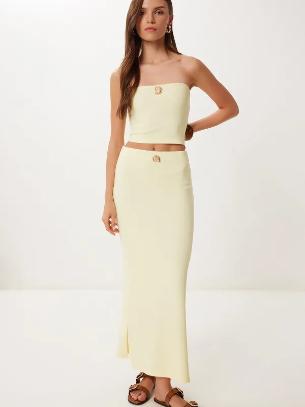 Design: Gevoerde zoom/rand, Elastische taille/zoom, Strapless/off-shoulder, Zijdelingse inkepingen; Voering: Niet gevoerd; Materiaal: Jersey; Motief: Effen; Kraag: Zonder kraag; Extra's: Applicaties, Op staal naden, Voelt zacht aan; Lengte: 7/8 lengte; Pasvorm: Slanke pasvorm; Armlengte: Mouwloos; Taillehoogte: Mid waist