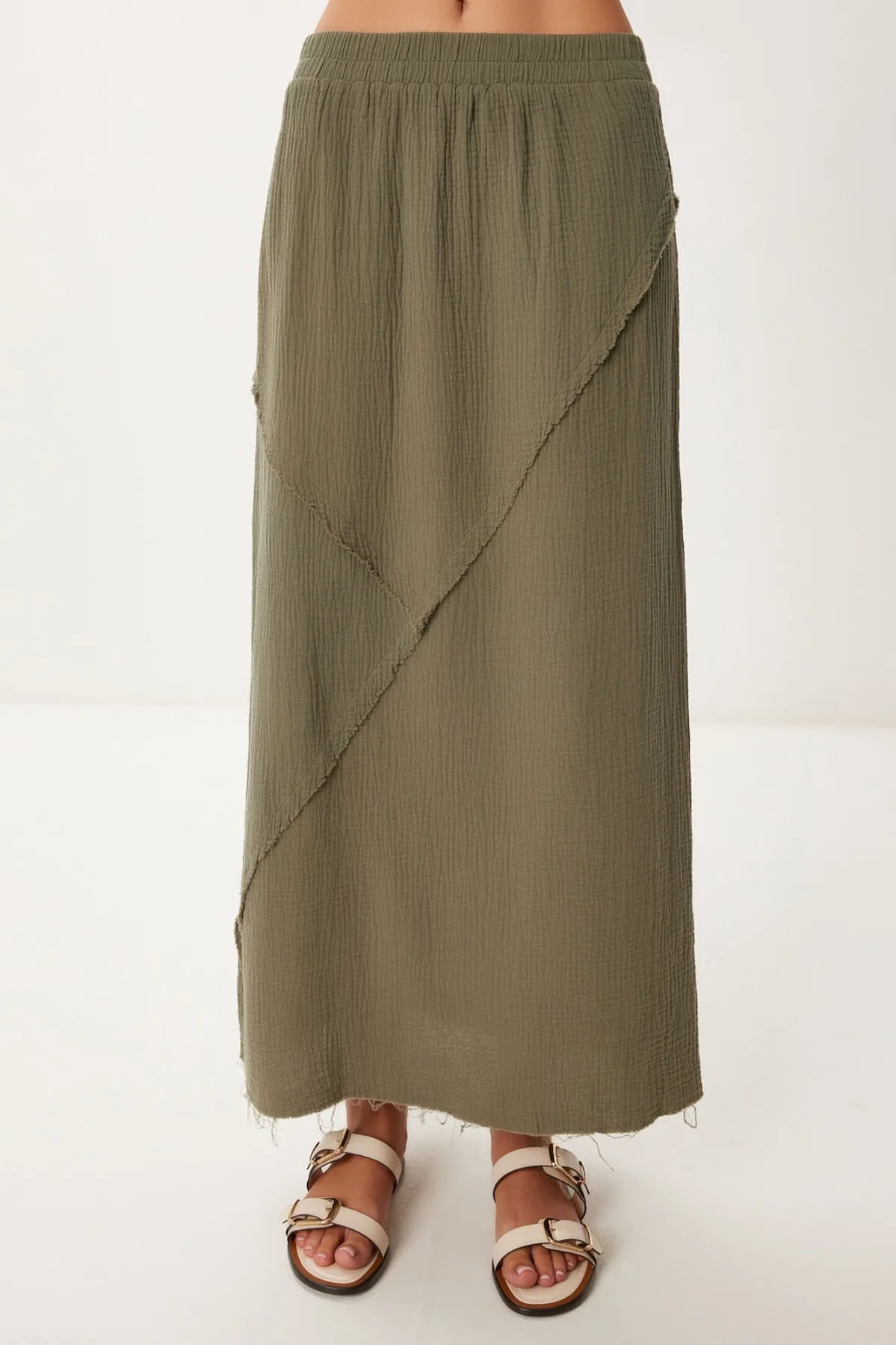 Design: Elastische taille/zoom, Open randen; Type sluiting: Elastische band; Materiaal: Mousseline; Motief: Effen; Details: Franjes; Extra's: Op staal naden, Lichte stof; Lengte: 7/8 lengte; Pasvorm: Normale pasvorm; Taillehoogte: Mid waist