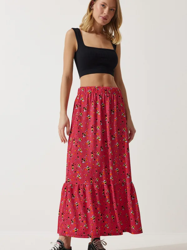 Design: Gevoerde zoom/rand, Elastische taille/zoom; Rokvorm: Volantrok; Details: Volant, Gedrapeerd; Extra's: All-over patroon, Voelt zacht aan; Lengte: 7/8 lengte; Pasvorm: Normale pasvorm; Taillehoogte: High waist