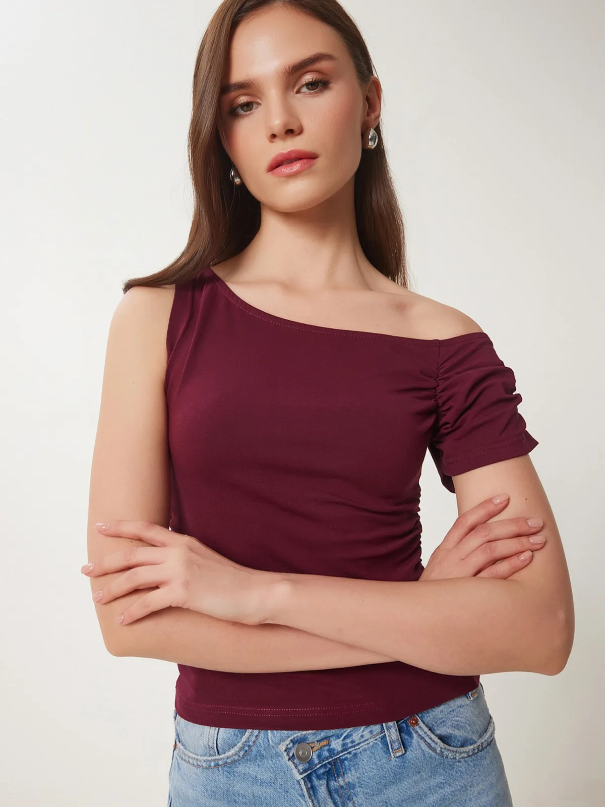 Design: Gevoerde zoom/rand, Rechte zoom, Strapless/off-shoulder; Materiaal: Jersey; Motief: Effen; Details: Gedrapeerd; Extra's: Op staal naden, Voelt zacht aan; Pasvorm: Slanke pasvorm; Armlengte: Kwartmouw; Lengte: Normale lengte