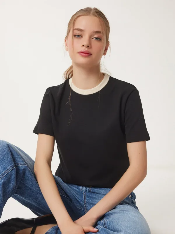 Design: Gevoerde zoom/rand, Geribbelde kraag, Contrasterende inserts; Materiaal: Jersey; Halstype: Ronde hals; Motief: Effen; Extra's: Op staal naden, Voelt zacht aan; Pasvorm: Normale pasvorm; Armlengte: Kwartmouw; Lengte: Normale lengte