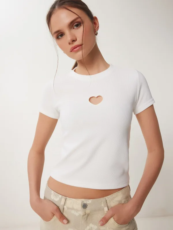 Design: Gevoerde zoom/rand, Geribbelde kraag, Rechte zoom, Geribbeld gebreid, Nektape; Materiaal: Jersey; Halstype: Ronde hals; Motief: Effen; Details: Cut-outs, Borduursels; Extra's: Op staal naden, Met textuur, Voelt zacht aan; Pasvorm: Normale pasvorm; Armlengte: Kwartmouw; Lengte: Normale lengte