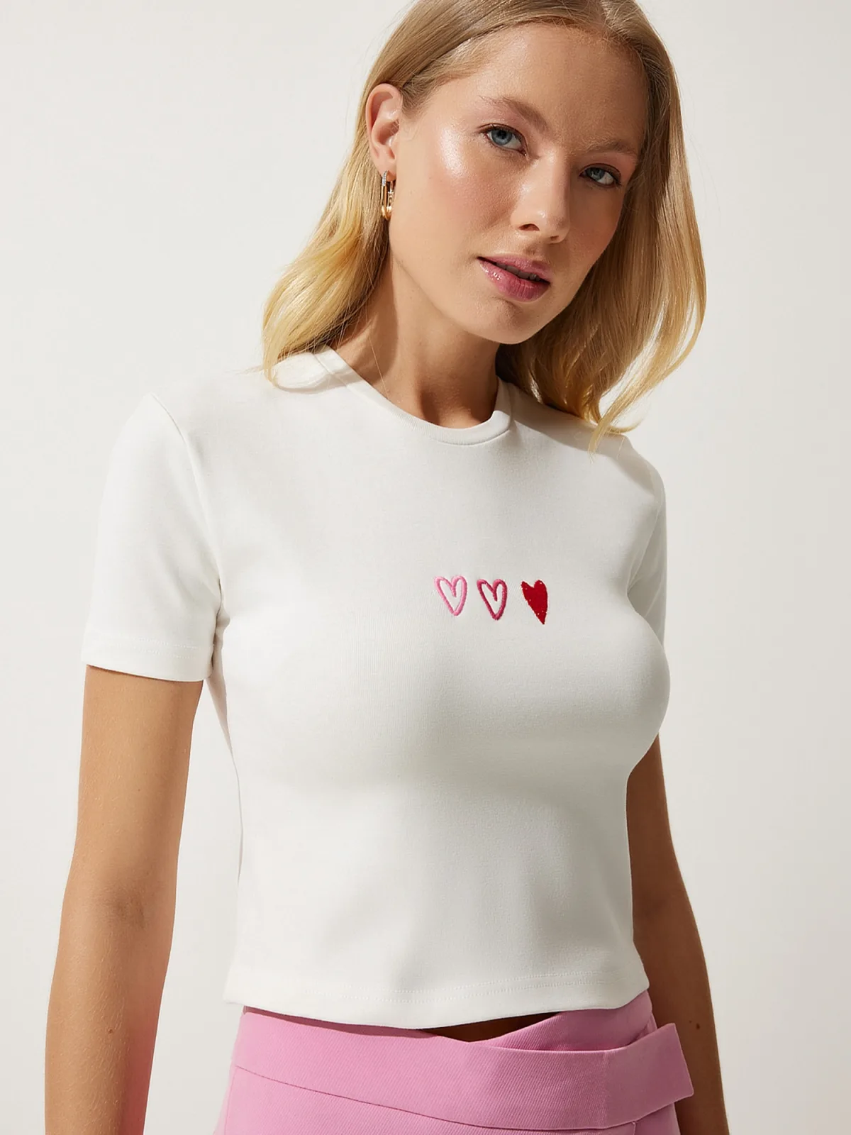 Design: Gevoerde zoom/rand, Geribbelde kraag, Rechte zoom; Materiaal: Jersey; Halstype: Ronde hals; Motief: Motiefprint; Details: Borduursels; Extra's: Op staal naden, Voelt zacht aan; Pasvorm: Normale pasvorm; Armlengte: Kwartmouw; Lengte: Normale lengte