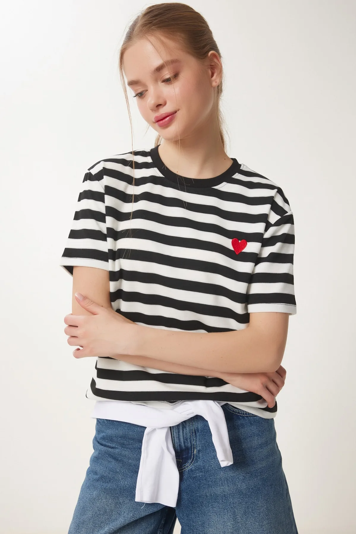 Design: Gevoerde zoom/rand, Geribbelde kraag, Overcut schouder; Materiaal: Jersey; Halstype: Ronde hals; Motief: Gestreept; Extra's: All-over patroon, Voelt zacht aan; Pasvorm: Losse pasvorm; Armlengte: Kwartmouw; Lengte: Normale lengte