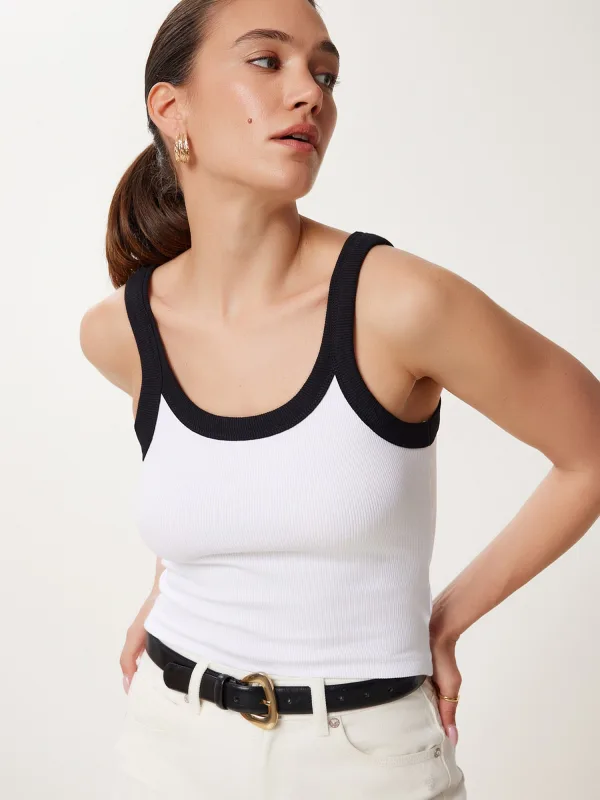 Design: Gevoerde zoom/rand, Contrasterende inserts; Materiaal: Jersey; Halstype: Ronde hals; Motief: Effen; Soort bandjes: Normale bandjes; Extra's: Voelt zacht aan; Pasvorm: Slanke pasvorm; Armlengte: Mouwloos; Lengte: Korte pasvorm
