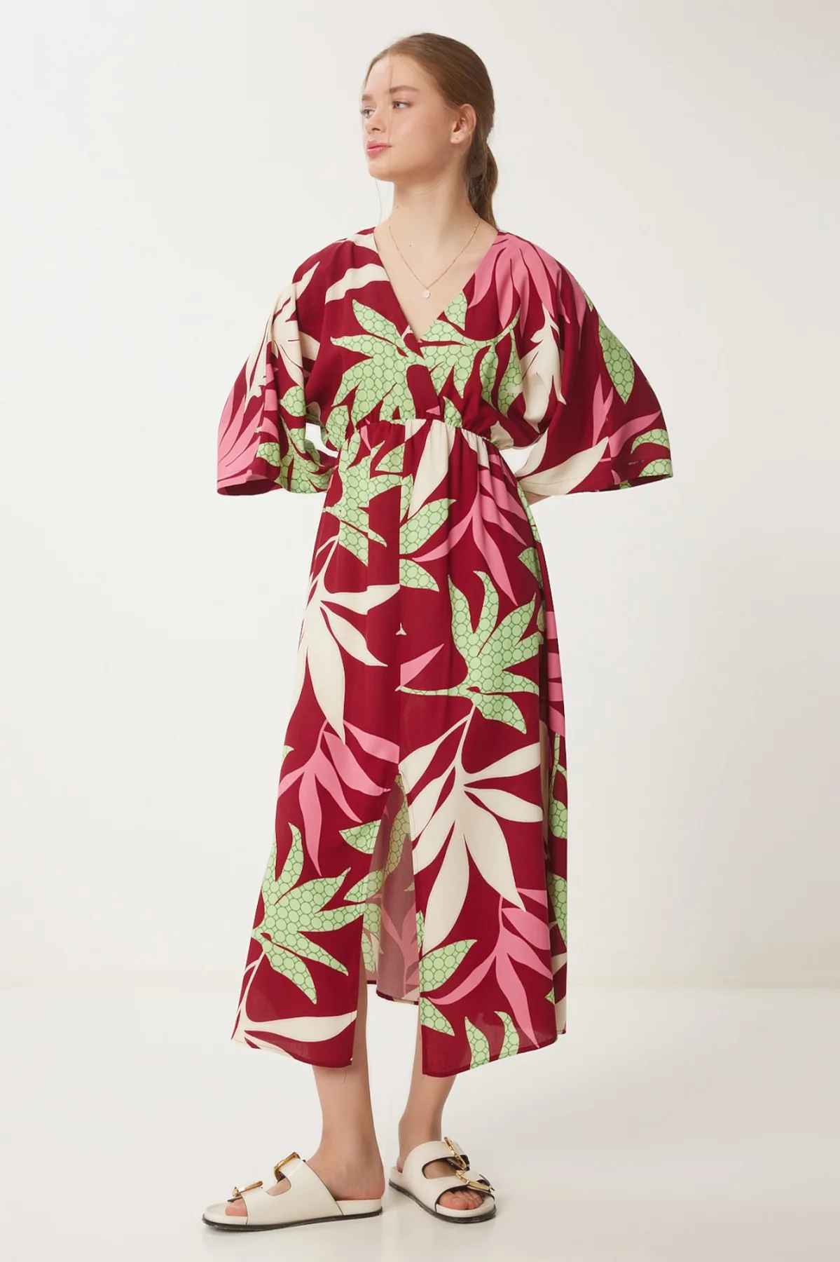 Design: Gevoerde zoom/rand, Split, Kimonomouwen, Wikkel-look; Materiaal: Viscose; Halstype: Wikkeltop; Motief: Bloemenprint; Details: Gedrapeerd; Extra's: All-over patroon, Gladde stof, Koele grip; Lengte: 3/4 lengte; Snit: Getailleerd; Pasvorm: Losse pasvorm; Armlengte: Driekwart mouw