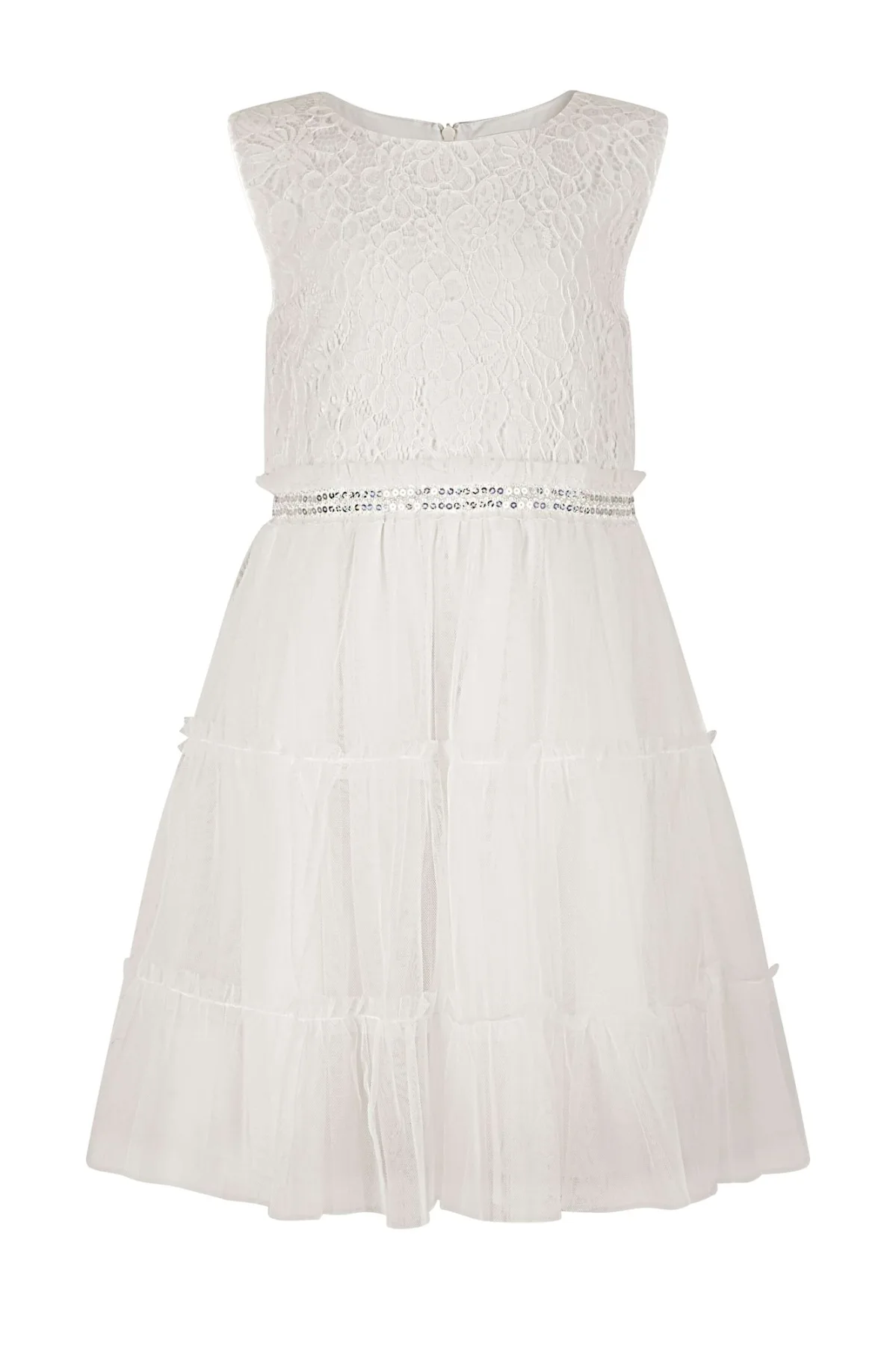 Halstype: Ronde hals; Motief: Effen; Soort bandjes: Normale bandjes; Details: Pailletten, Ruches, Kant, Gedrapeerd; Lengte: Knielengte; Pasvorm: Normale pasvorm; Armlengte: Mouwloos