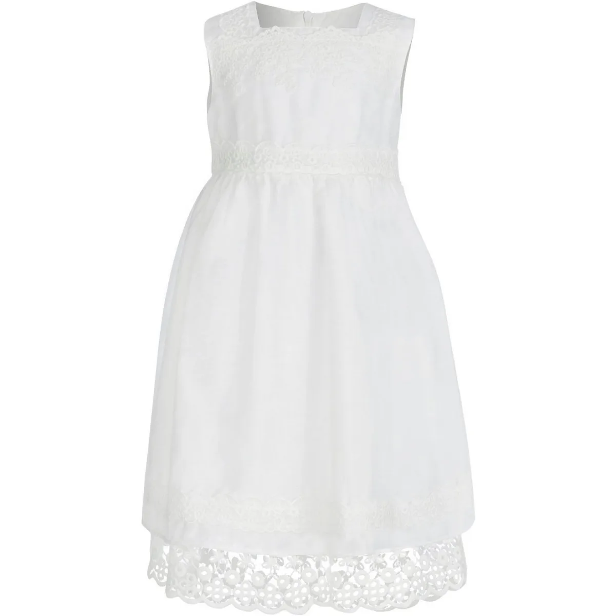 Jurk van Happy Girls voor meisjes;Katoenmix;Getailleerde pasvorm;Effen design;A-lijn;Ronde hals;Met kant;Strikdetail;Ruglengte bij maat 116: 72 cm