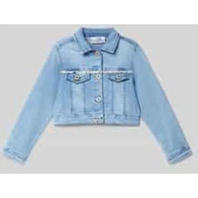 Jeansjack van Happy Girls voor kinderen;Elastische katoenmix;Regular fit;Kanten rand;Platte kraag;Doorknoopsluiting;Borstzakken;Siernaden;Met kralen;Ruglengte bij maat 116: 31 cm;Schouderbreedte bij maat 116: 34 cm;Mouwlengte bij maat 116: 41 cm
