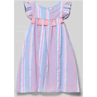 Kinderen jurk van Happy Girls;katoenmix;regular fit;siergarnering;ronde hals;kapmouwen met ruches;ruglengte bij maat 116: 11 cm