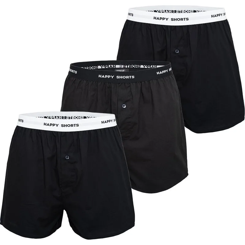 Happy Shorts 3-Pack Wijde Boxershort Effen Zwart - Losse boxershort...