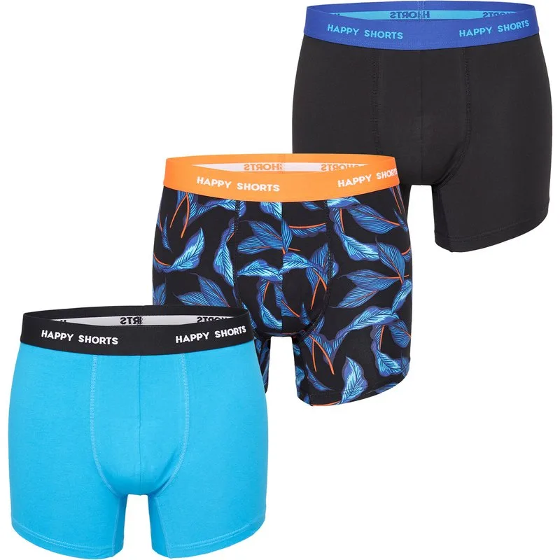 Happy Shorts Heren boxershorts trunks bladeren blauw/zwart 3-pack Prijzen