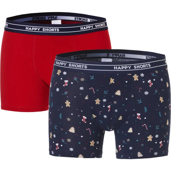 Verras jezelf of iemand anders met deze vrolijke Happy Shorts kerst boxershorts. De set bestaat uit twee comfortabele boxershorts, waarvan één met een leuke kerstprint en één in een effen kleur.