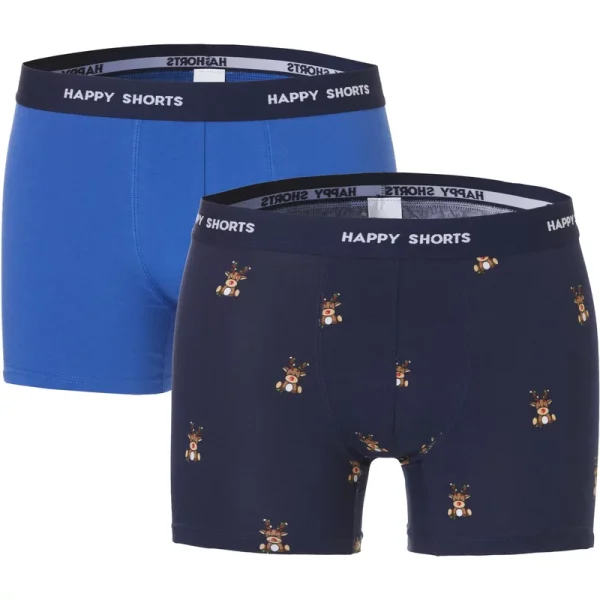 Verras jezelf of iemand anders met deze vrolijke Happy Shorts kerst boxershorts. De set bestaat uit twee comfortabele boxershorts, waarvan één met een leuke kerstprint en één in een effen kleur.