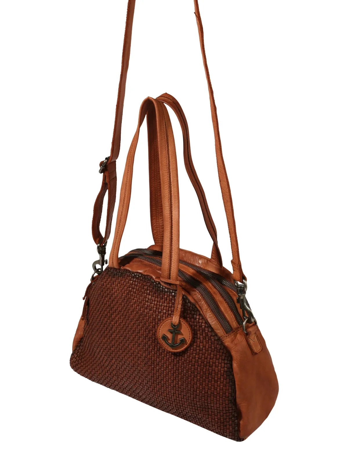 Design: Afneembare banden, Ruim hoofdvak, Verstelbare riemen; Type sluiting: Ritssluiting; Materiaal: Leer; Motief: Effen; Materiaal: Glad leer; Extra's: Gevlochten structuur, Label plaatje, Inclusief hanger, Draagbaar op 2 manieren; Maat (inhoud): Klein (< 25 l); Hengsellengte: Lange schouderriemen, Korte schouderriemen