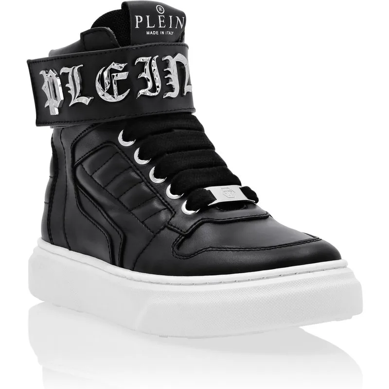 Deze mid-top sneakers brengen gedurfde streetwear energie in de looks van kinderen, afgewerkt met luxe details voor een opvallende stijl. Perfect om te combineren met casual outfits, ze belichamen de edgy geest van Plein. gemaakt van premium kalfsleer voor een verfijnde touch Distinctive logo strap voegt een opvallend en herkenbaar accent toe mid-top silhouet biedt stijl en enkelondersteuning voering van kalfsleer zorgt voor comfort en ademend vermogen duurzame rubberen buitenzool ontworpen voor grip en dagelijks gebruik