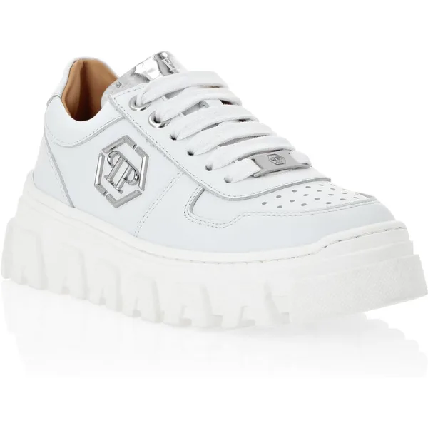 Deze sneakers leveren een moderne streetwear attitude op maat voor kinderen, waarbij sportief gemak wordt gecombineerd met luxe details. Perfect voor het voltooien van casual looks, ze brengen zowel comfort als een gedurfd Plein-signatuur. Premium kalfsleer bovenwerk voor een verfijnde afwerking kenmerkende zeshoekige logopatch voor een iconische touch kalfsleer voering zorgt voor comfort en ademend vermogen stevige rubberen buitenzool zorgt voor stabiliteit en een eigentijdse rand ontworpen voor dagelijks gebruik met een statement appeal