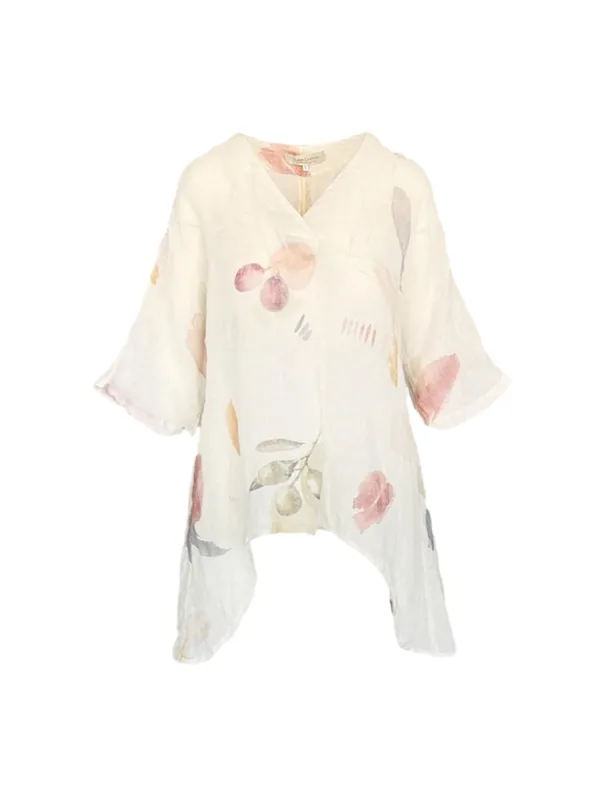 Blouse type: Blouseshirt; Materiaal: Linnen; Motief: Bloemenprint; Kraag: Tuniek kraag; Pasvorm: Losse pasvorm; Armlengte: Driekwart mouw; Lengte: Normale lengte