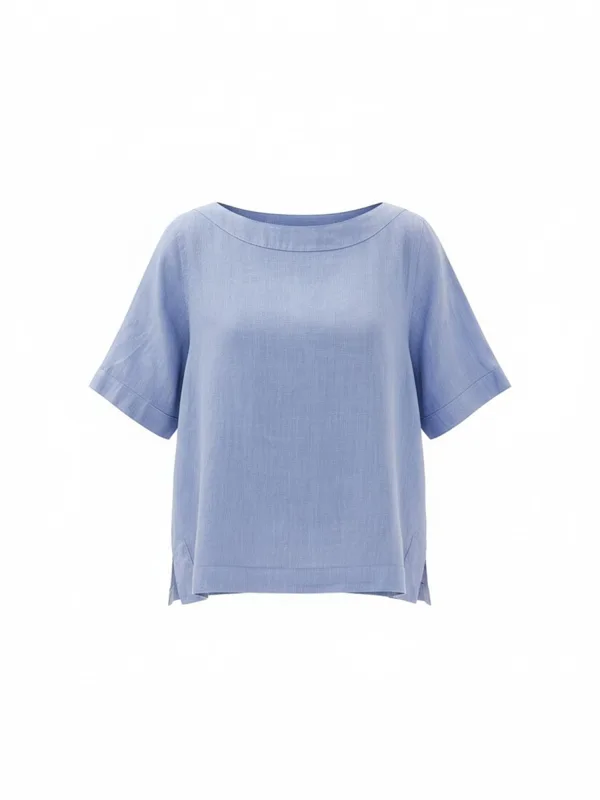 Blouse type: Blouseshirt; Materiaal: Linnen; Motief: Effen; Kraag: Zonder kraag; Pasvorm: Normale pasvorm; Armlengte: Kwartmouw; Lengte: Normale lengte